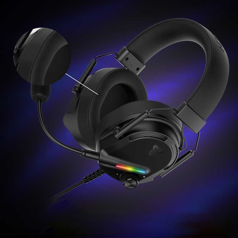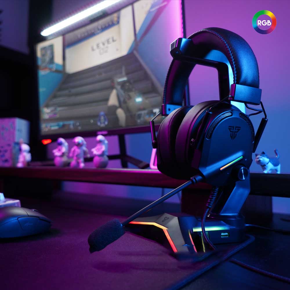 نورپردازی RGB در این هدفون فنتک یکی از جذابترین ویژگیهایی است که تجربه کاربری را به طور چشمگیری ارتقا میدهد. این نورپردازی با طیف گستردهای از رنگها، جلوهای مدرن و گیمینگ به هدست میبخشد و هنگام استفاده—چه در حال بازی باشید، چه استریم یا حتی تماشای فیلم—یک فضای هیجانانگیز و شخصی سازی شده ایجاد میکند.