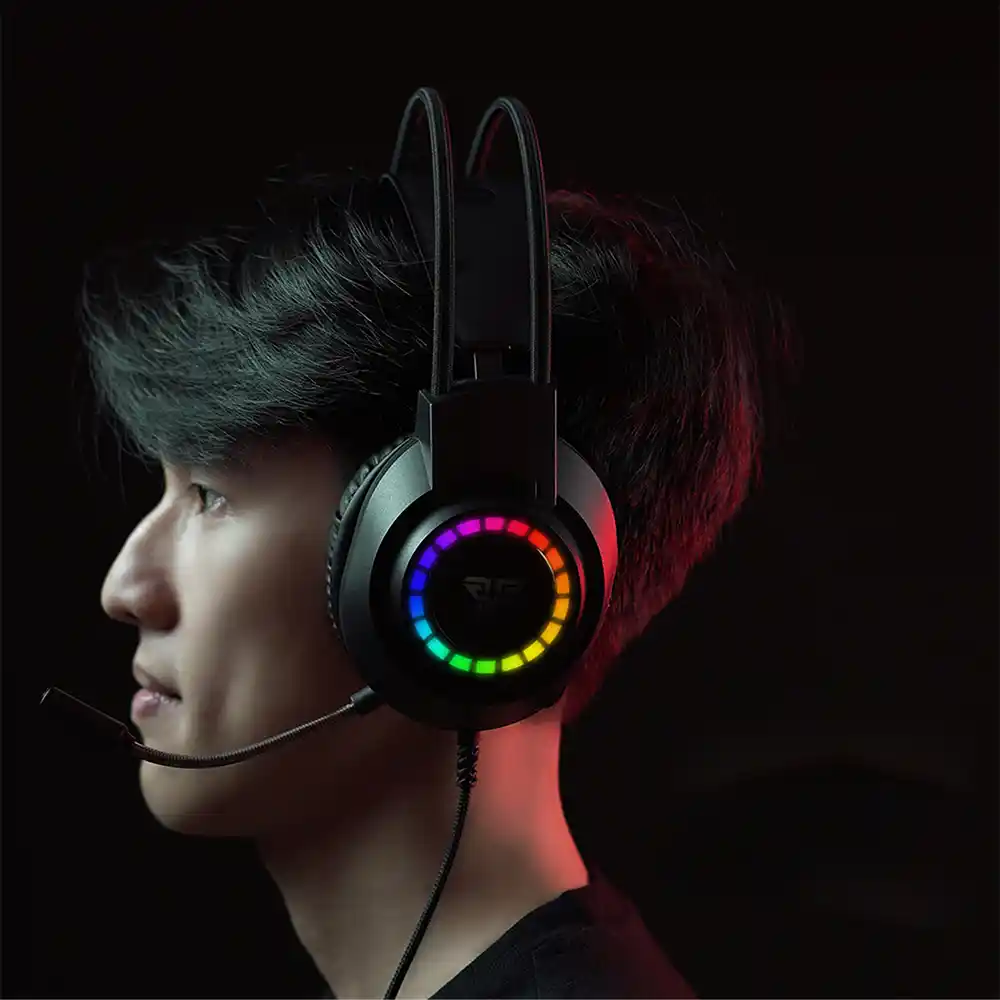 نورپردازی RGB در این هدفون فنتک یکی از جذابترین ویژگیهایی است که تجربه کاربری را به طور چشمگیری ارتقا میدهد. این نورپردازی با طیف گستردهای از رنگها، جلوهای مدرن و گیمینگ به هدست میبخشد و هنگام استفاده—چه در حال بازی باشید، چه استریم یا حتی تماشای فیلم—یک فضای هیجانانگیز و شخصی سازی شده ایجاد میکند.