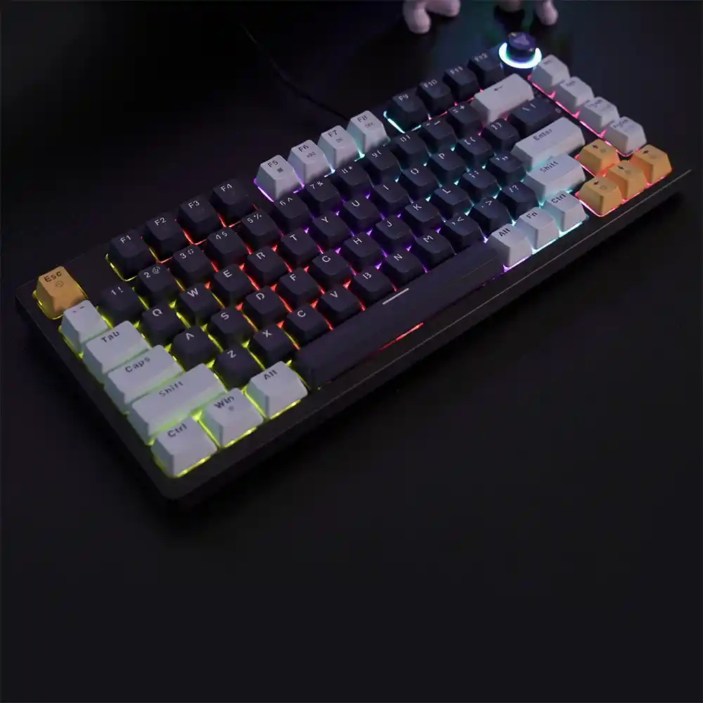 - فرم فاکتور 75%: در این کیبورد بخش نامپد (کلیدهای عددی سمت راست) حذف شده است. به عبارت دیگر، این نوع کیبورد در مقایسه با کیبوردهای کامل (Full-size)، از ابعاد کوچکتر و وزن سبکتر برخوردار است، با این حال تمامی کلیدهای اصلی و کاربردی مورد نیاز برای گیمینگ را در خود جای داده است. بسیاری از گیمرها استفاده از کیبوردهای این مدل را ترجیح میدهند، چرا که این طراحی فضای بیشتری را برای حرکت آزادانه ماوس فراهم میسازد و حمل و نقل کیبورد را نیز آسانتر میکند.