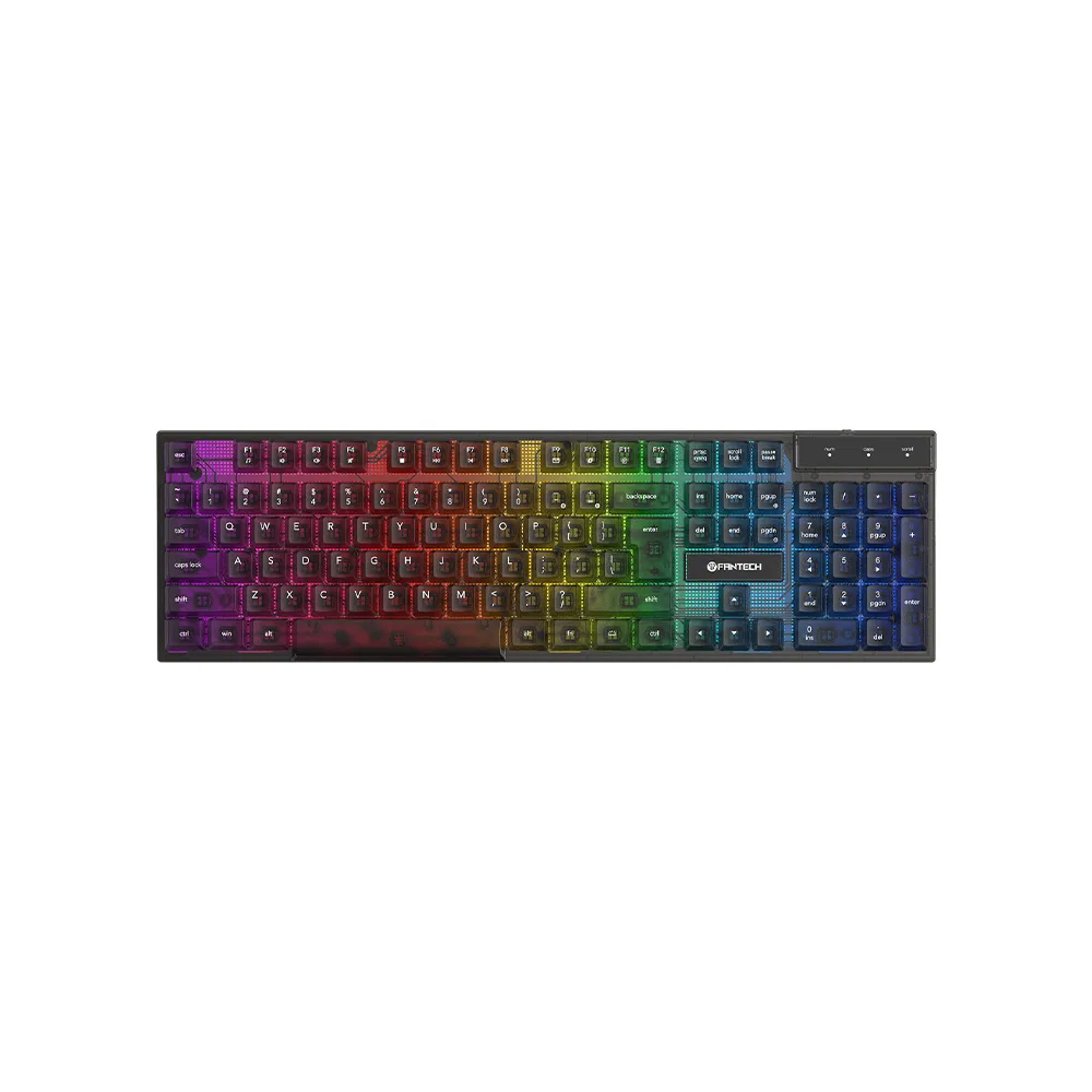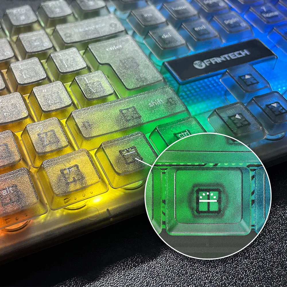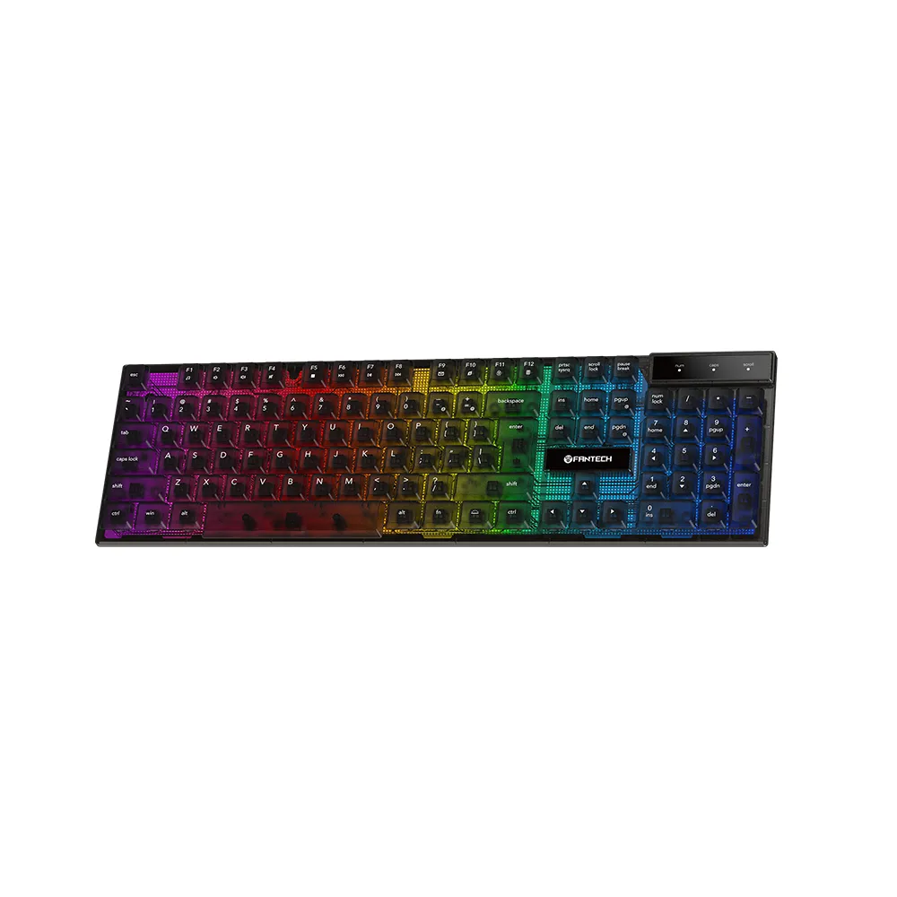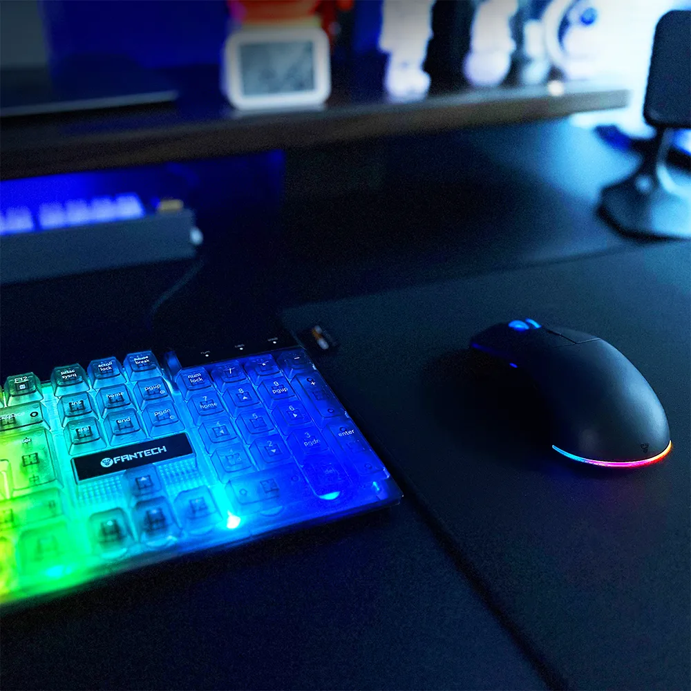 - نورپردازی RGB: از مشخصههای دیگر این محصول کمپانی فنتک، نورپردازی زیبای RGB با چندین حالات مختلف زیر کلیدها است. نورپردازی RGB در کیبوردهای گیمینگ، علاوه بر زیبایی چشمنواز، به گیمرها کمک میکند تا در محیطهای تاریک هم به راحتی کلیدها را پیدا کنند. امکان شخصی سازی رنگها و افکتهای نوری در این کیبورد نیز باعث شده هر کاربر بتواند سبک و سلیقه خاص خودش را روی کیبورد پیاده کند.