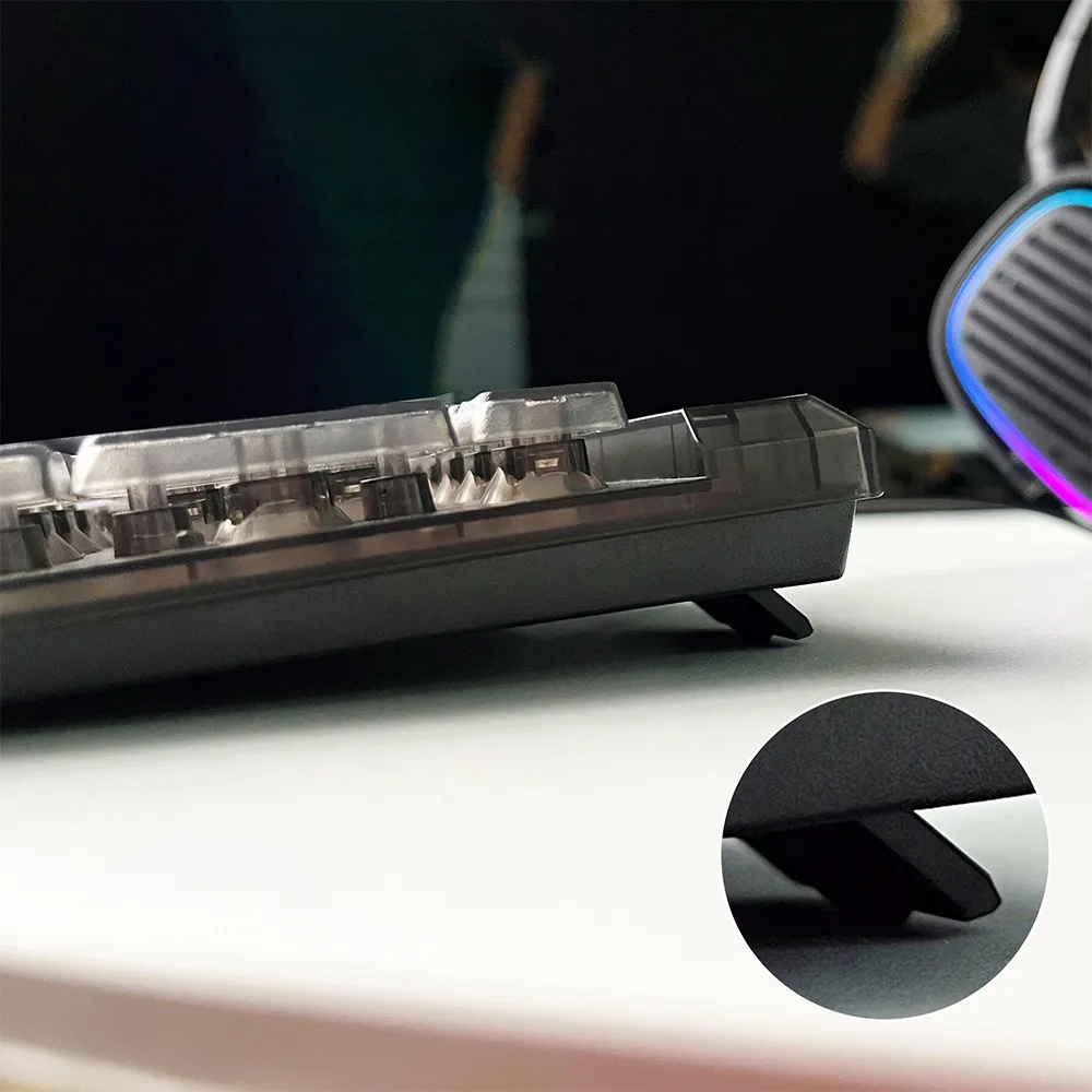 - دکمههای ممبران و ترنسپرنت: این نوع کلیدها هنگام فشار دادن، صدای بسیار کمی تولید میکنند و حس نرمی دارند، به همین دلیل برای استفاده در محیطهای اداری، خانگی و گیمینگ مناسباند. کیبوردهای ممبران معمولاً وزن سبکتری دارند، مصرف انرژی کمتری دارند و قیمت آنها نسبت به کیبوردهای مکانیکال پایینتر است، اما از نظر تقاضا در رده بالایی قرار دارد. زیرا دکمههای این مدل کیبورد دارای سطوح شفاف یا به اصطلاح ترنسپرنت موجب زیبایی دوچندان این محصول شده است.