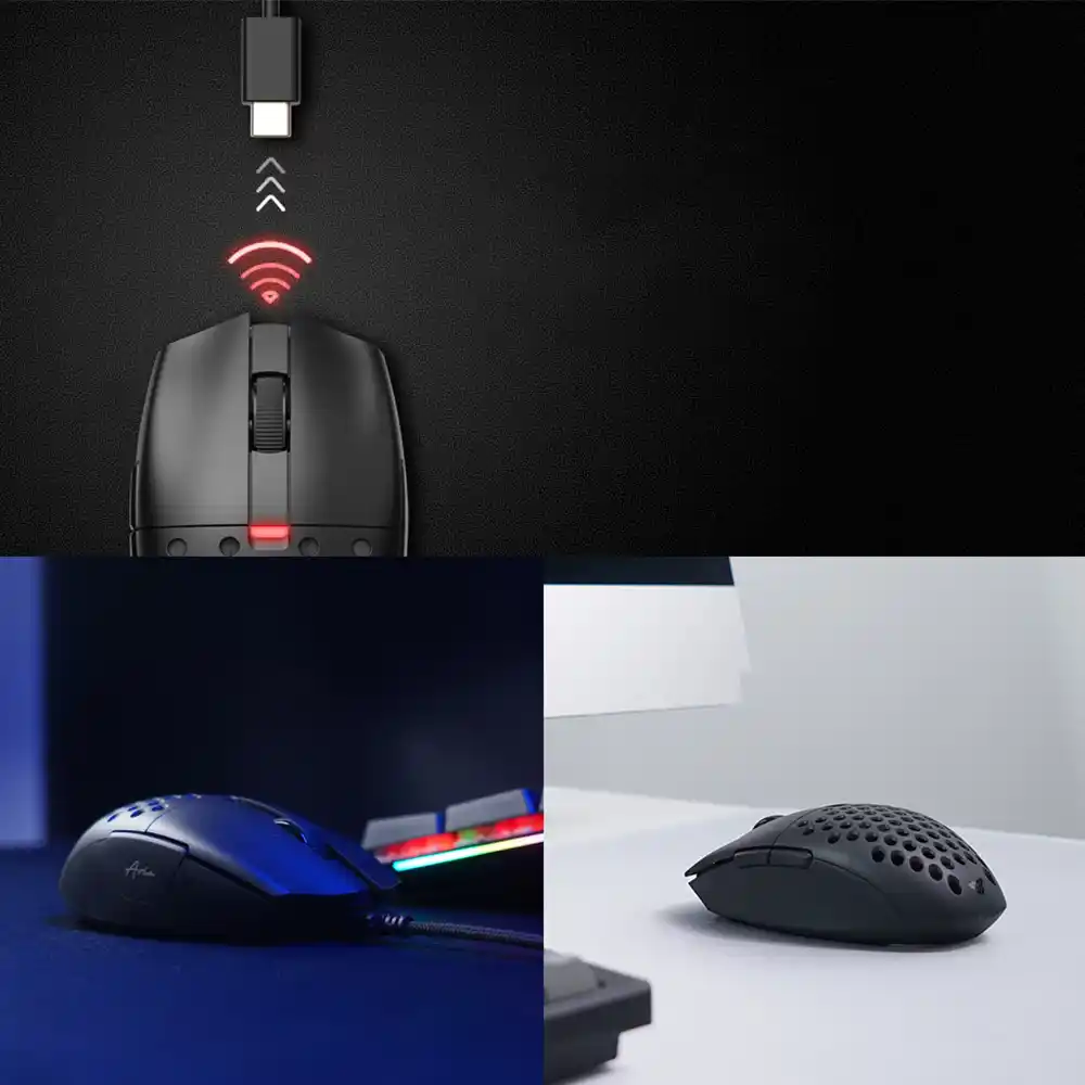 از ویژگیهای ظاهری این ماوس هم میتوان به نورپردازی RGB آن هنگام استفاده، ابعاد 114*65*39 میلی متر و وزن 59 گرم اشاره کرد. این محصول علاوه بر اتصال بلوتوثی و سیمی، با استفاده از دانگل 2.4GHz و باتری لیتیوم یون قابل شارژ با ظرفیت 300 میلیآمپر ساعت نیز قابل استفاده خواهد بود. یکی دیگر از نکات قابل توجه در این ماوس گیمینگ، قابلیت پشتیبانی آن از نسخههای مختلف ویندوز است که خیال بسیاری از کاربران را در این مورد راحت کرده است. از دیگر مواردی که باید به آن اشاره کنیم میزان IPS (Inches Per Second) این کالاست که به حداکثر سرعتی اشاره دارد که حسگر ماوس میتواند بدون از دست دادن دقت، حرکت را ثبت کند. مقدار سرعت این ماوس 650 IPS است.
